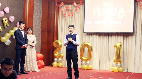年會晚會現(xiàn)場充滿激情、熱烈、活躍的氣氛。首先,由公司總經(jīng)理何飛君致辭,何總說:“在過去的一年,感謝歐美家人的付出,2017年歐美完成了多項改革,擴(kuò)大了團(tuán)隊規(guī)模;提升了企業(yè)形象,可以說2017年為我們?nèi)蘸蟮陌l(fā)展打好了堅實的基礎(chǔ)。所以在2018年的工作中希望我們都可以拿出激情與干勁,為我們的美好未來而奮斗” !
